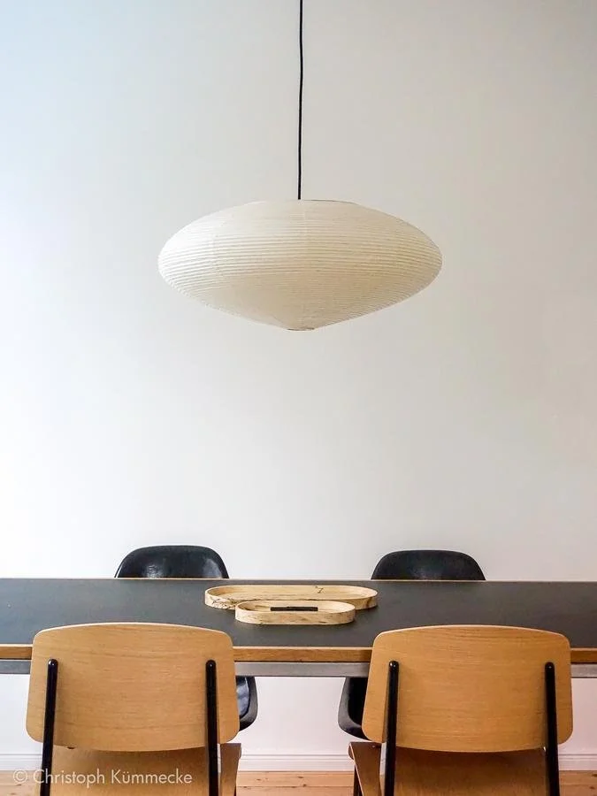 Lampene i serien med Akari Light Sculptures ble designet av Isamu Noguchi i 1951 og er håndlaget av tradisjonelt shoji-papir av japanske håndverkere.